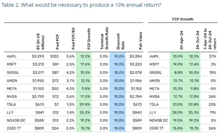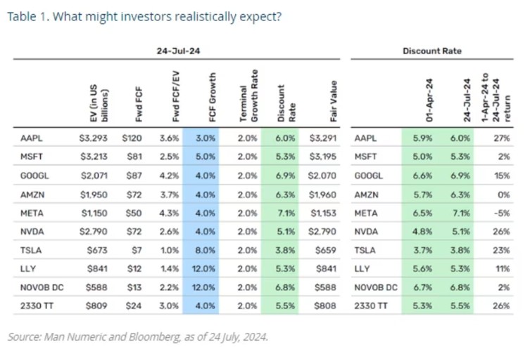 Man Group的分析显示,“七巨头”的估值反映出它们在未来十年内实现中等偏低的“中个位数回报”的可能性。Man Group解释说,这七家公司,包括$谷歌-C (GOOG.US)$、$亚马逊 (AMZN.US)$、$苹果 (AAPL.US)$、$Meta Platforms (META.US)$、$微软 (MSFT.US)$、$英伟达 (NVDA.US)$和$特斯拉 (TSLA.US)$,只需以适度的速度增长其自由现金流,就可以证明其当前的估值是合理的。